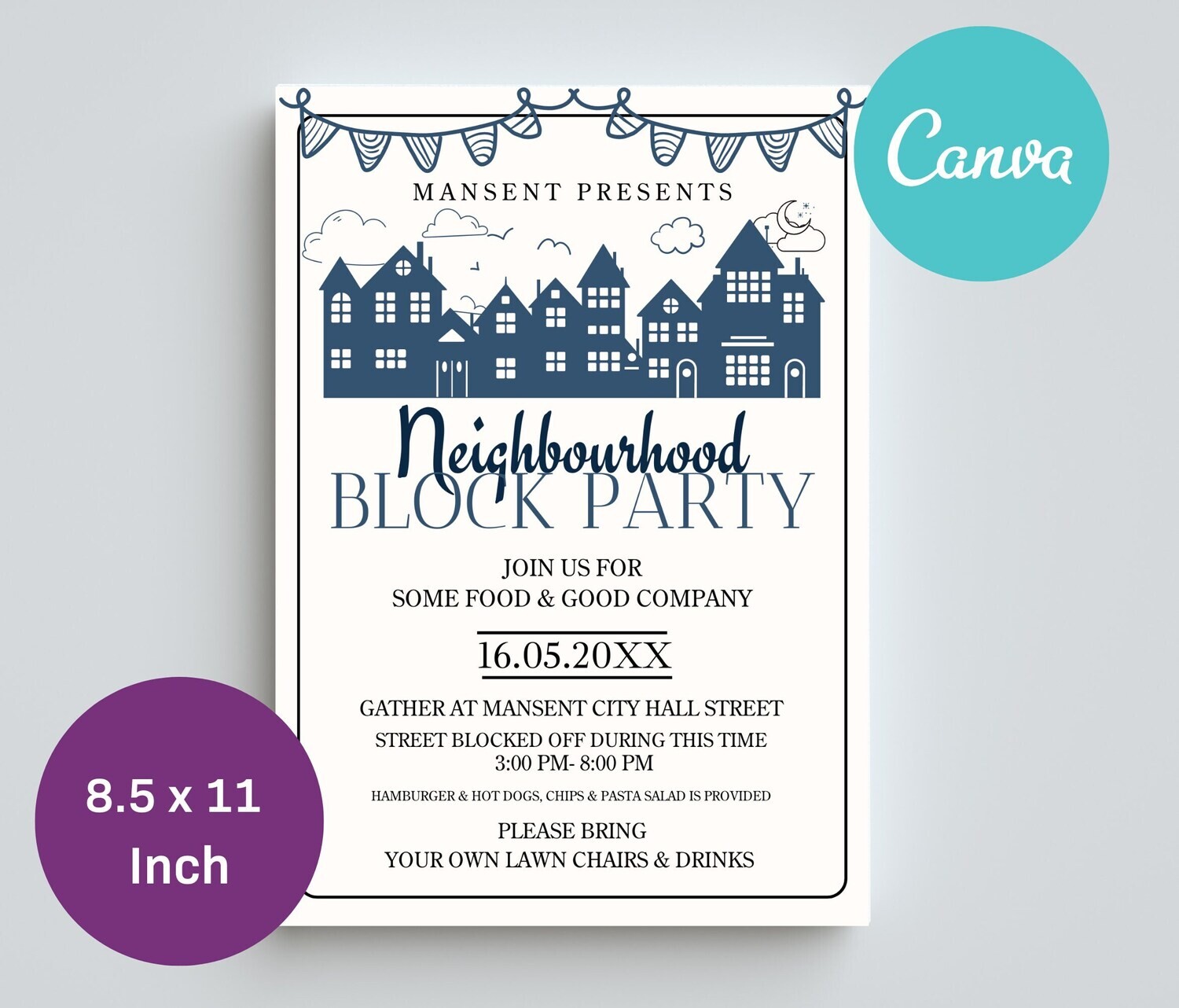 Tired of generic flyers that don’t capture the excitement of your block party? Want to create a personalized invitation that gets your neighbors buzzing? Look no further! Our editable Block Party Invitation Flyer is the perfect solution; it’s a great way to bring your community together and celebrate using Canva.com. Get yours now to create excitement and make everyone eager for your fantastic block party! Try editing using this free trial template.