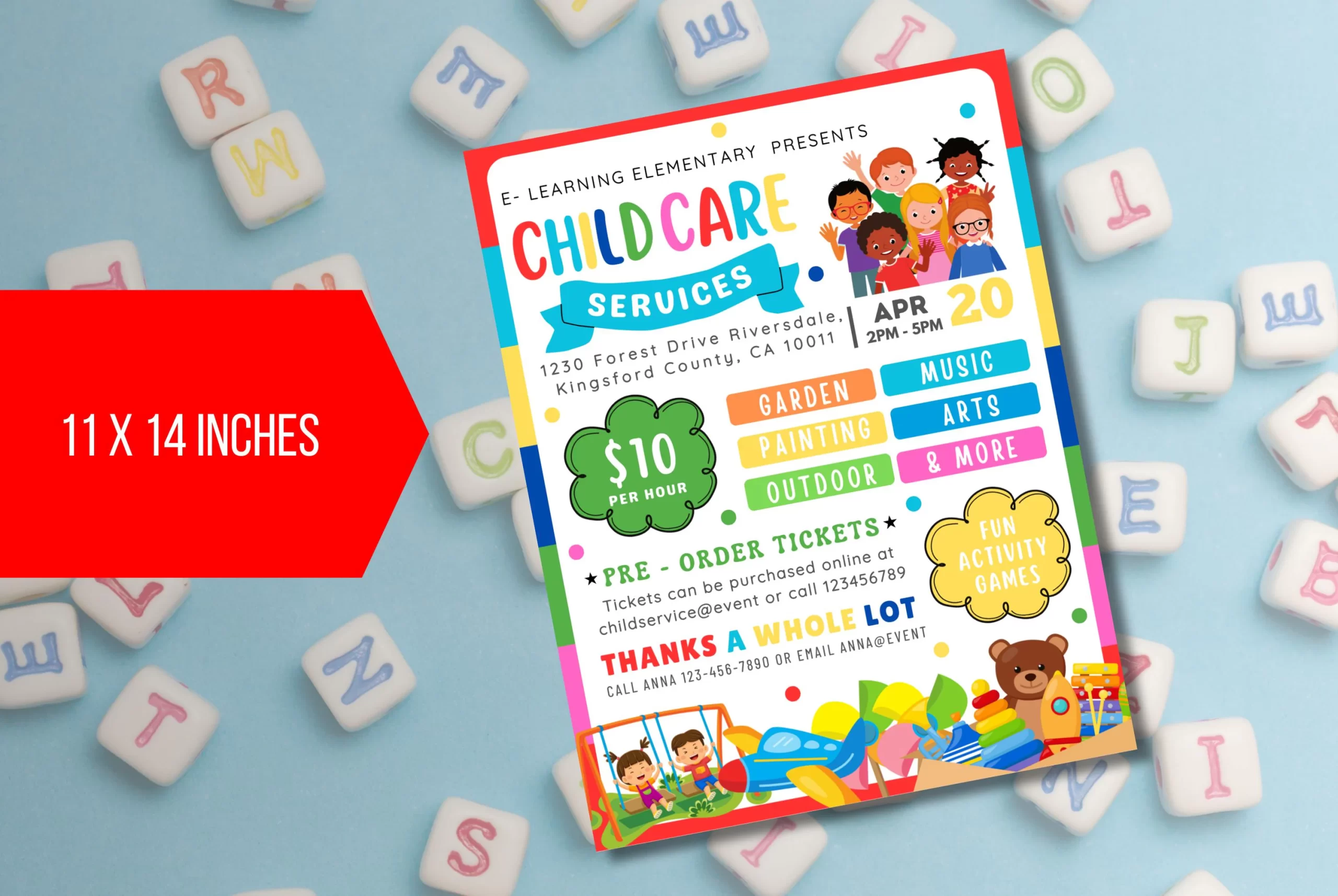 With the help of our thorough, editable “Child Care Services” flyer, busy parents can rest easy! This welcoming design features a diverse group of contented kids playing together, encircled by vibrant colours and upbeat graphics emphasising a secure and caring setting. This leaflet lists your services, hours, and contact details, which are ideal for drawing in families looking for trustworthy and considerate daycare. This friendly and educational ad will reassure parents that their children are in capable care using Canva.com