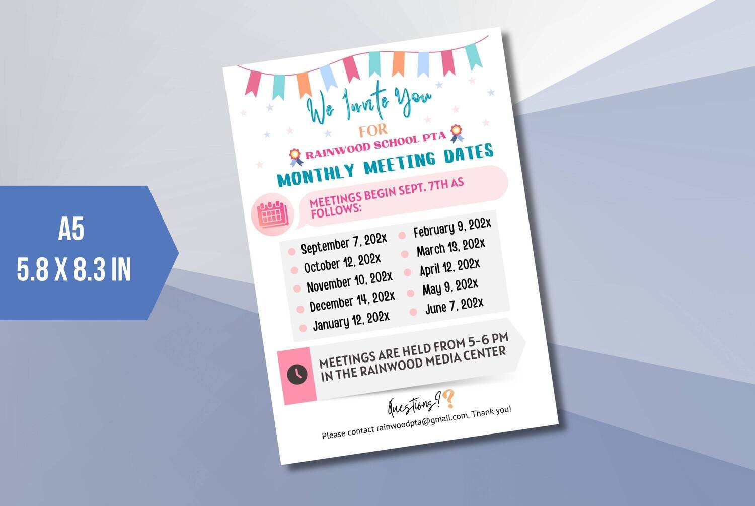 Editable PTA Meeting Dates Flyer
