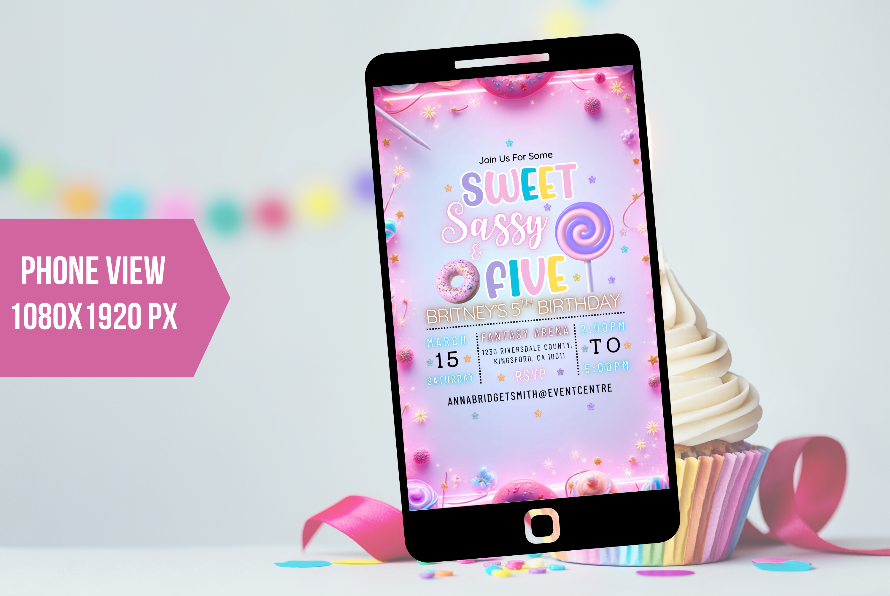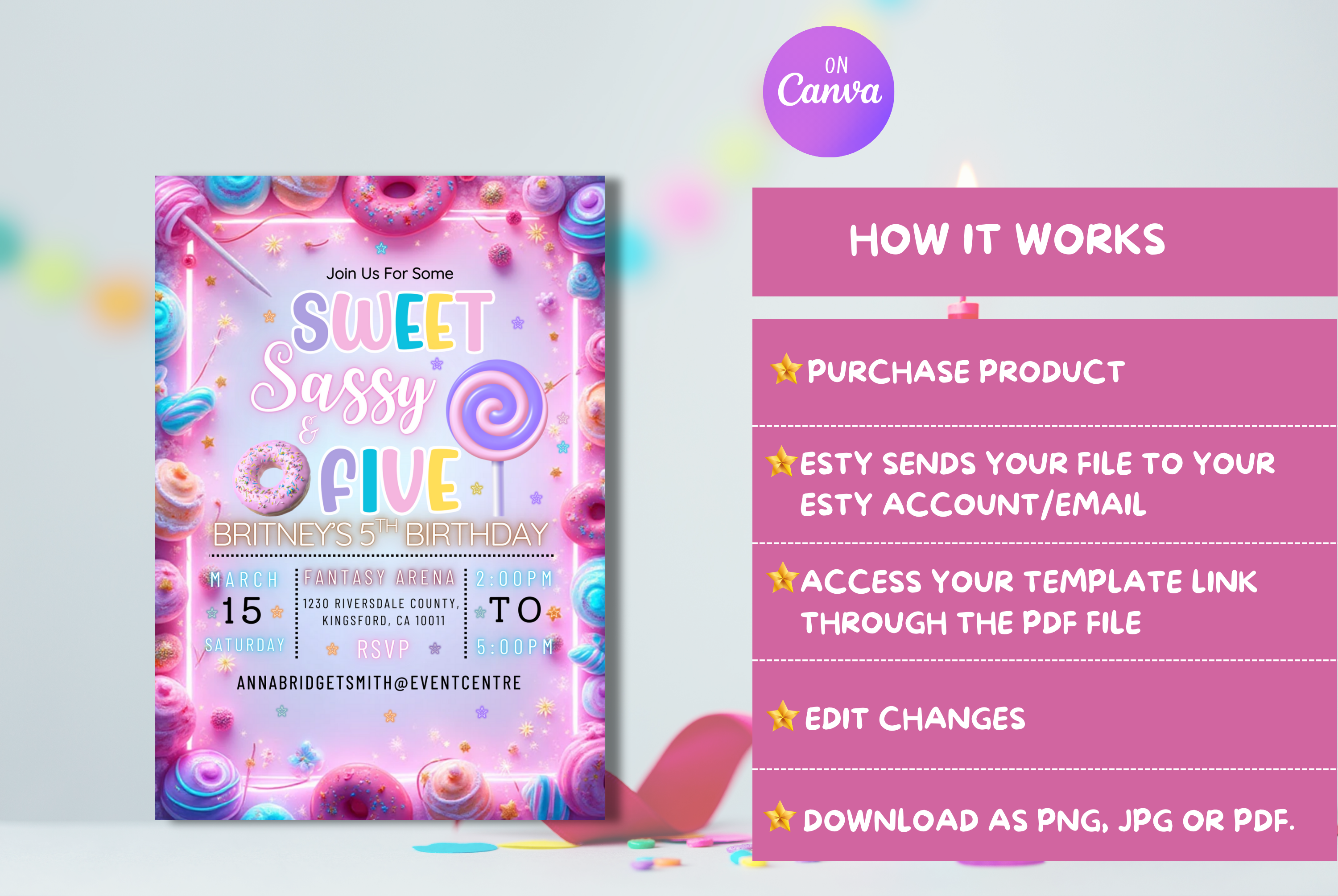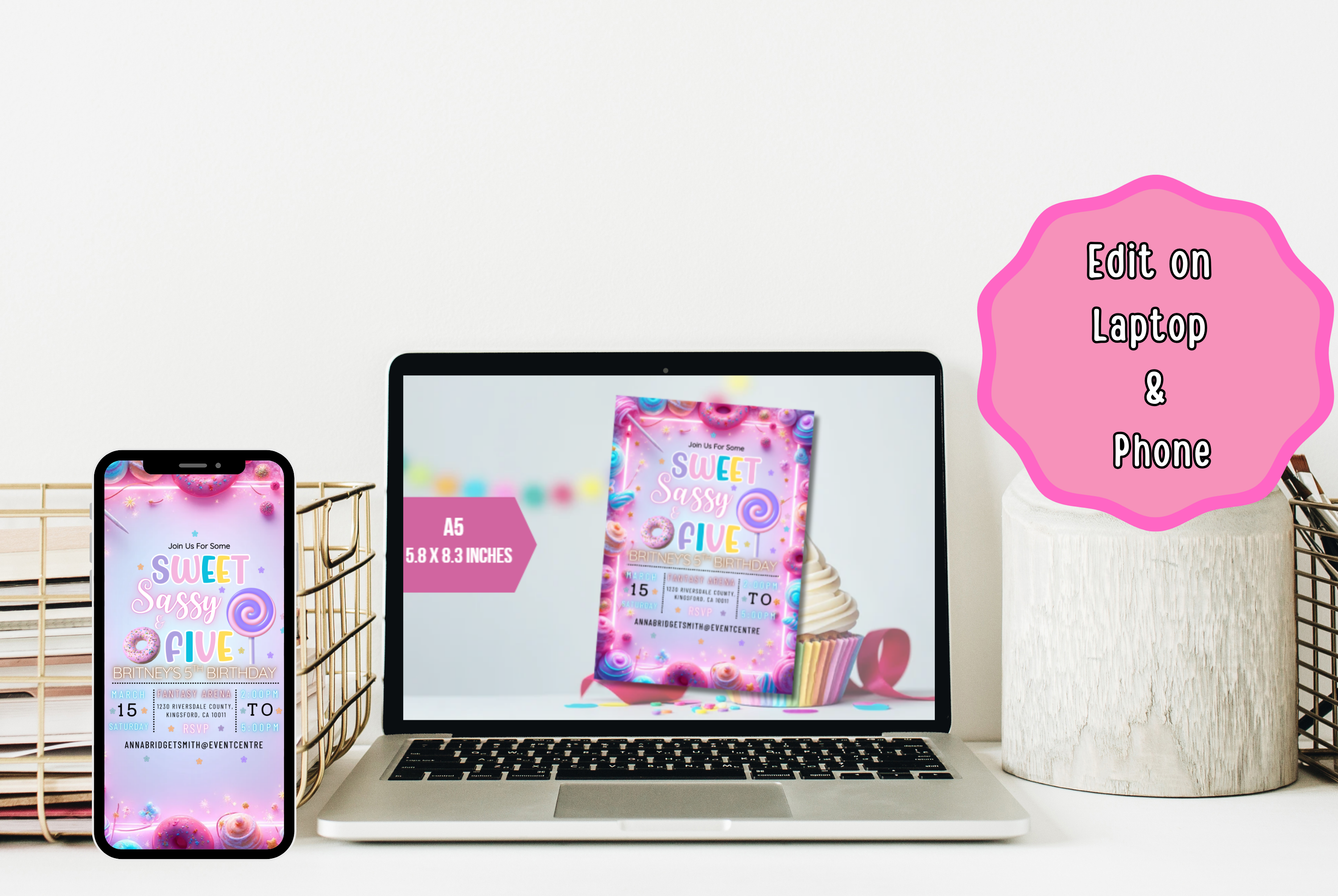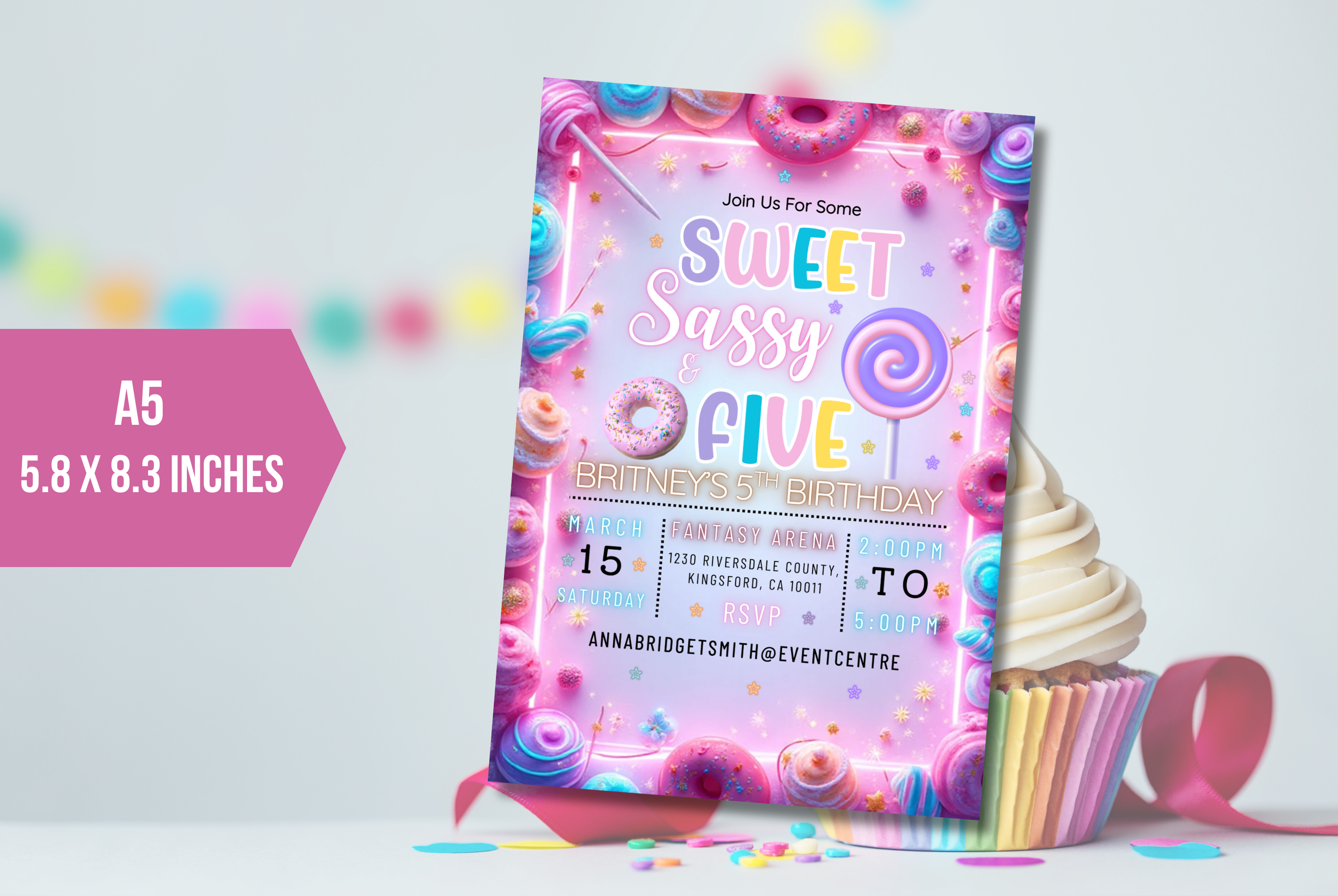 Editable Sweet Sassy And Five Birthday Party Invite